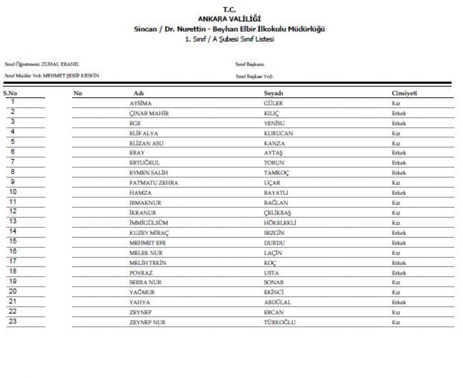2025-2026 Eğitim-Öğretim Yılında okulumuzda eğitim görecek olan 1. Sınıf öğrencilerimizin sınıf belirleme kura işlemi Milli Eğitim Bakanlığı E-Okul sistemi üzerinden yapılmıştır. Listeler aşağıda ve okulmuz panosunda yayınlnamıştır. Hayırlı olmasını diler, tüm öğretmen ve öğrencilerimize başarılar dileriz.